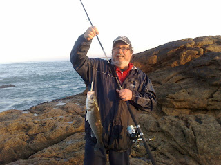 Isto é que foi mesmo "Grande Fèzada"!!! Só isso (a fé) me podia demover de me juntar ao Povo que foi para outro Spot bem mais a Sul. Mas eu tinha dito ontem , que gostei do trabalhar do mar no meu Spot, e foi por isso que insisti hoje mais uma vez. Ao 3º lançamento, e com um "pingalim vermelhinho" fisguei este lindo exemplar, que bem me custou pôr em cima da rocha. O resto da família também andava por lá, porque senti mais 2 ou 3 toques. Sorry ao Povo não ter desta vez alinhado com eles, mas...................................................ainda bem que não fui (já vou levar no toutiço)