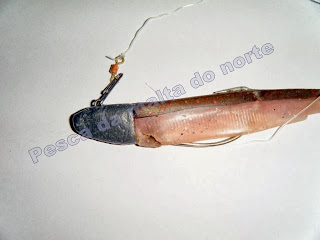 mais umas quantas pescarias e com alguns resultados como podem ter visto aqui no blog mas o que é certo é que o vinil como realmente se porta!!!??? é resistente??? aguenta as pedras etc...??? e os cabeçotes ??? como é??? e o anzol ??? ora ai esta o que vos quero passar. é que no dia 31 de Outubro fui com o João e o Marco fazer um pesaquinha o Marco pescou ao fundo eu e o João uma corricadela com os Black Minnow e como todos sabem tem estado um mar do cacete e nesse dia não foi diferente, arrisquei numas pedras e ao fim de uns bons lançamentos la ficou ... puxa que puxa e tal e solta e deixa andar com a vaga mas partiu o multifilamento, azar afinal era só o segundo que perdia mas agora é que ai vem onde quero chegar.....
