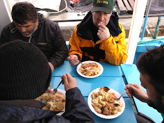Nimguem adormeceu...hehehehe à hora combinado estava tudo prontinho para seguir e tomar o pequeno almoço e comprar pão para levar-mos para o barco pois falava-se em bifanas LOL